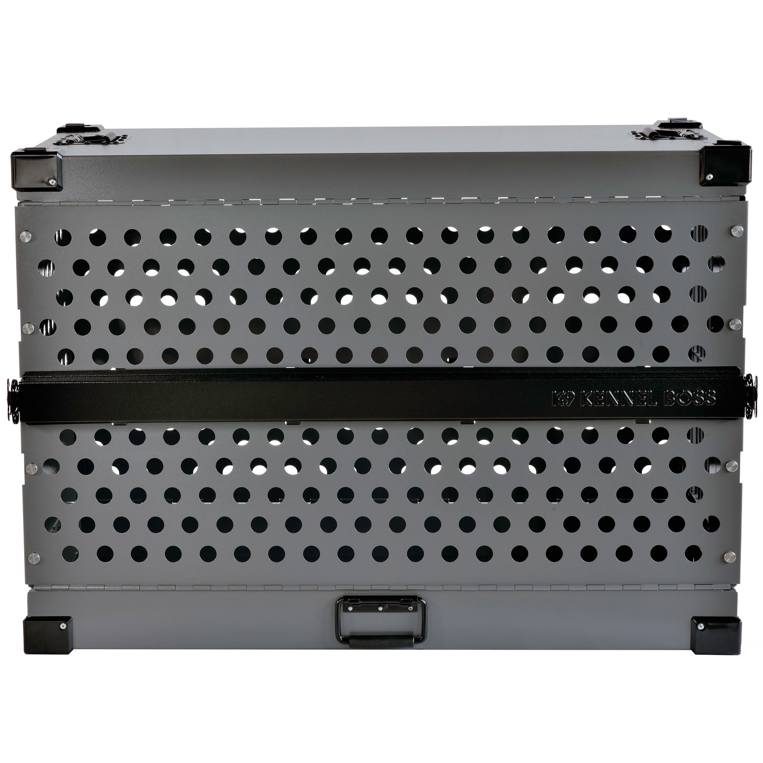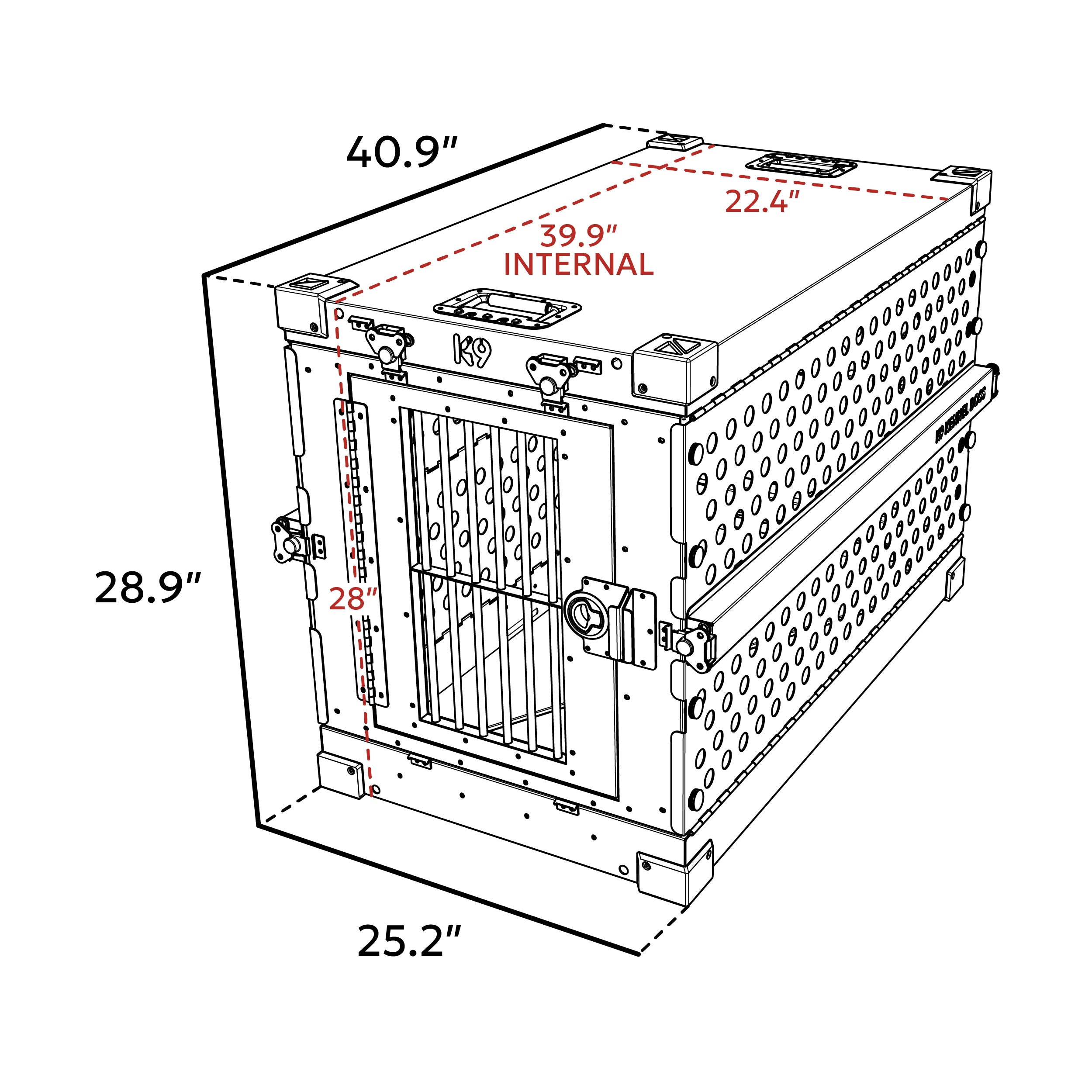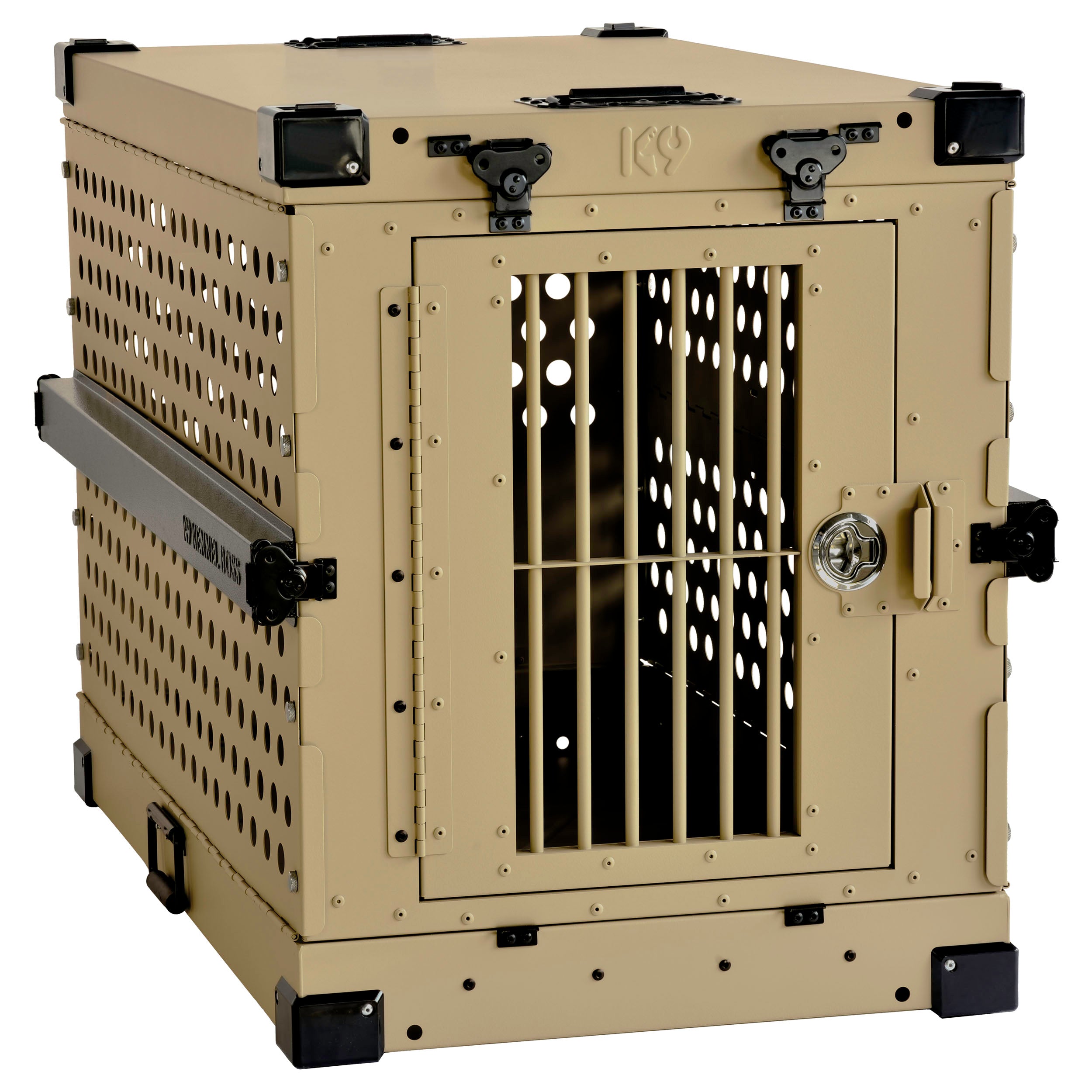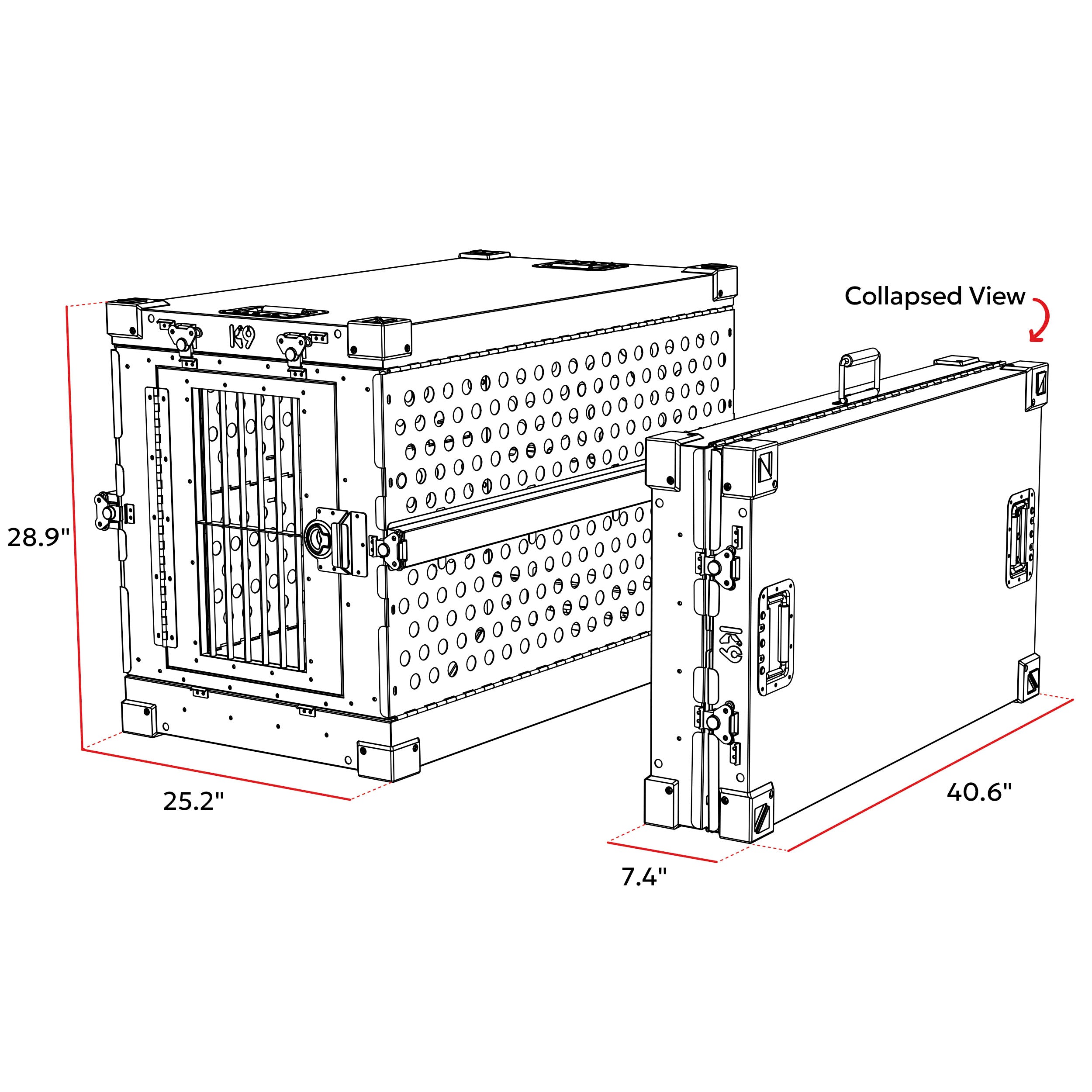 The K9 Kennel Boss collapsible dog crate is engineered to keep your dog safe and contained. With its lightweight aluminum construction, commercial-grade hardware, and high-quality powder-coated finish, this sturdy design helps prevent dog escapes and is easy to clean. The collapsible design easily transitions from assembled to suitcase configuration in under a minute with no additional tools required. Built-in handles allow for easy transporting or storing of the crate when not in use.