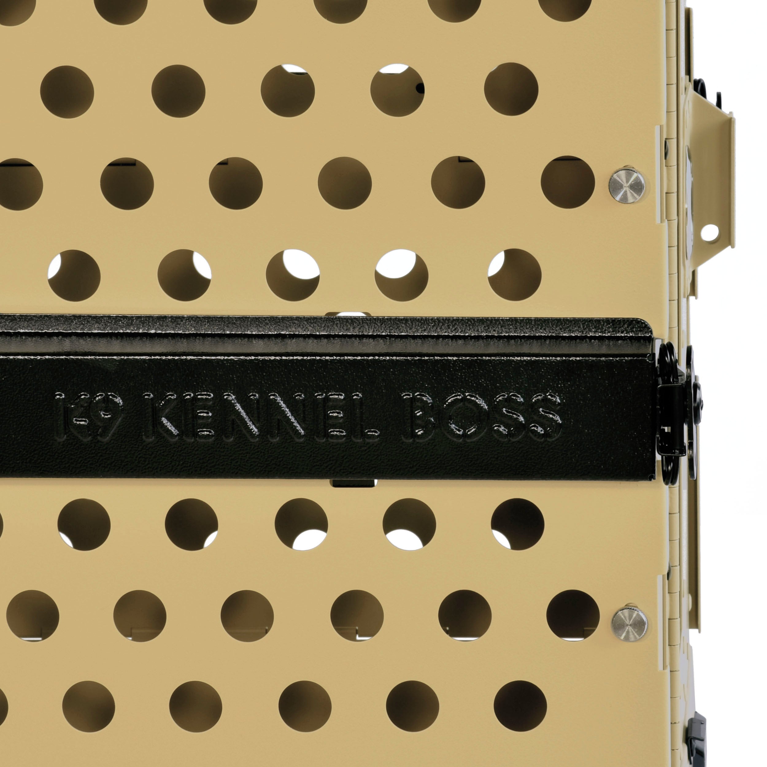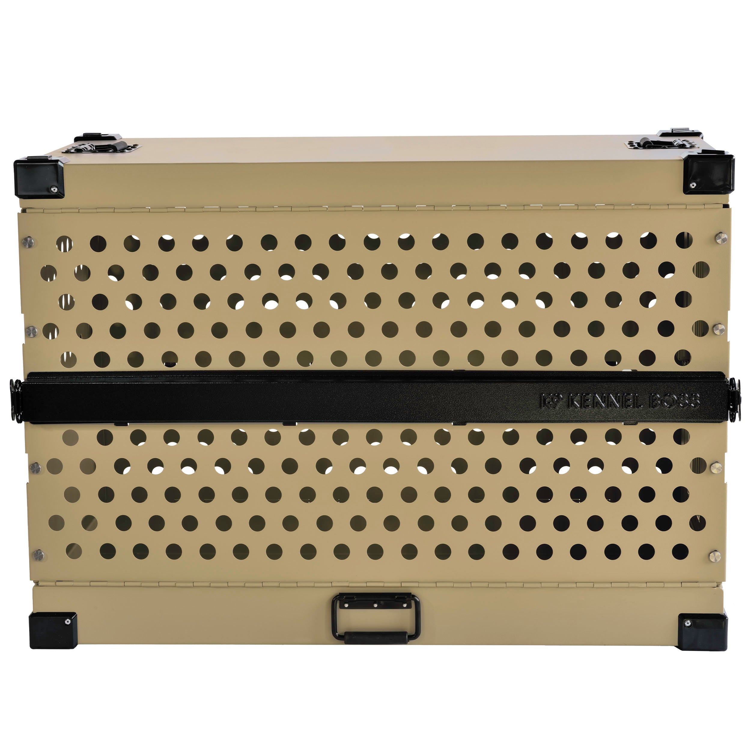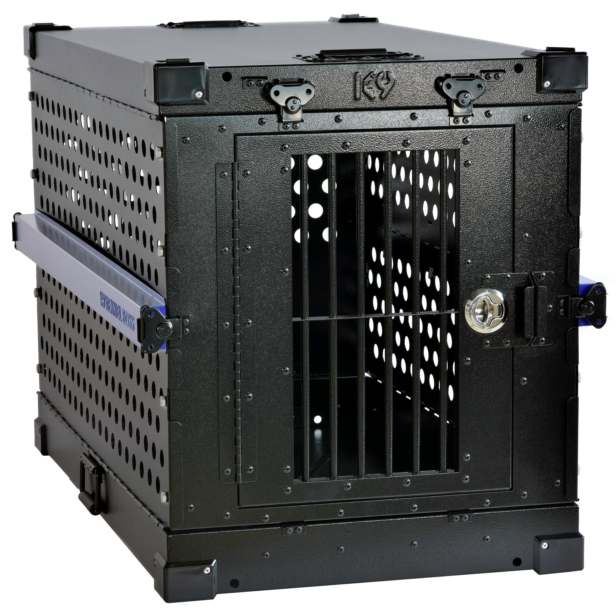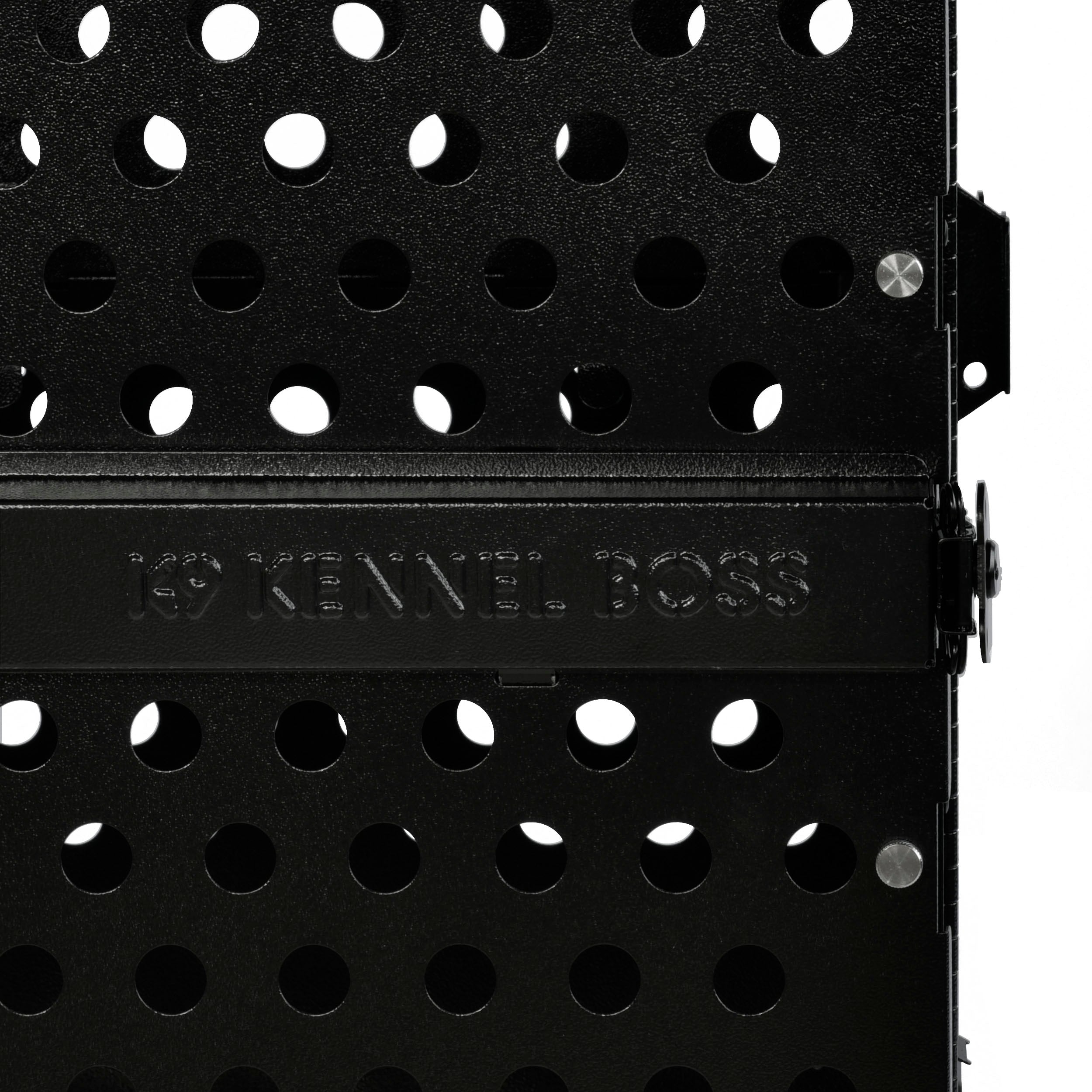 The K9 Kennel Boss collapsible dog crate is engineered to keep your dog safe and contained. With its lightweight aluminum construction, commercial-grade hardware, and high-quality powder-coated finish, this sturdy design helps prevent dog escapes and is easy to clean. The collapsible design easily transitions from assembled to suitcase configuration in under a minute with no additional tools required. Built-in handles allow for easy transporting or storing of the crate when not in use.