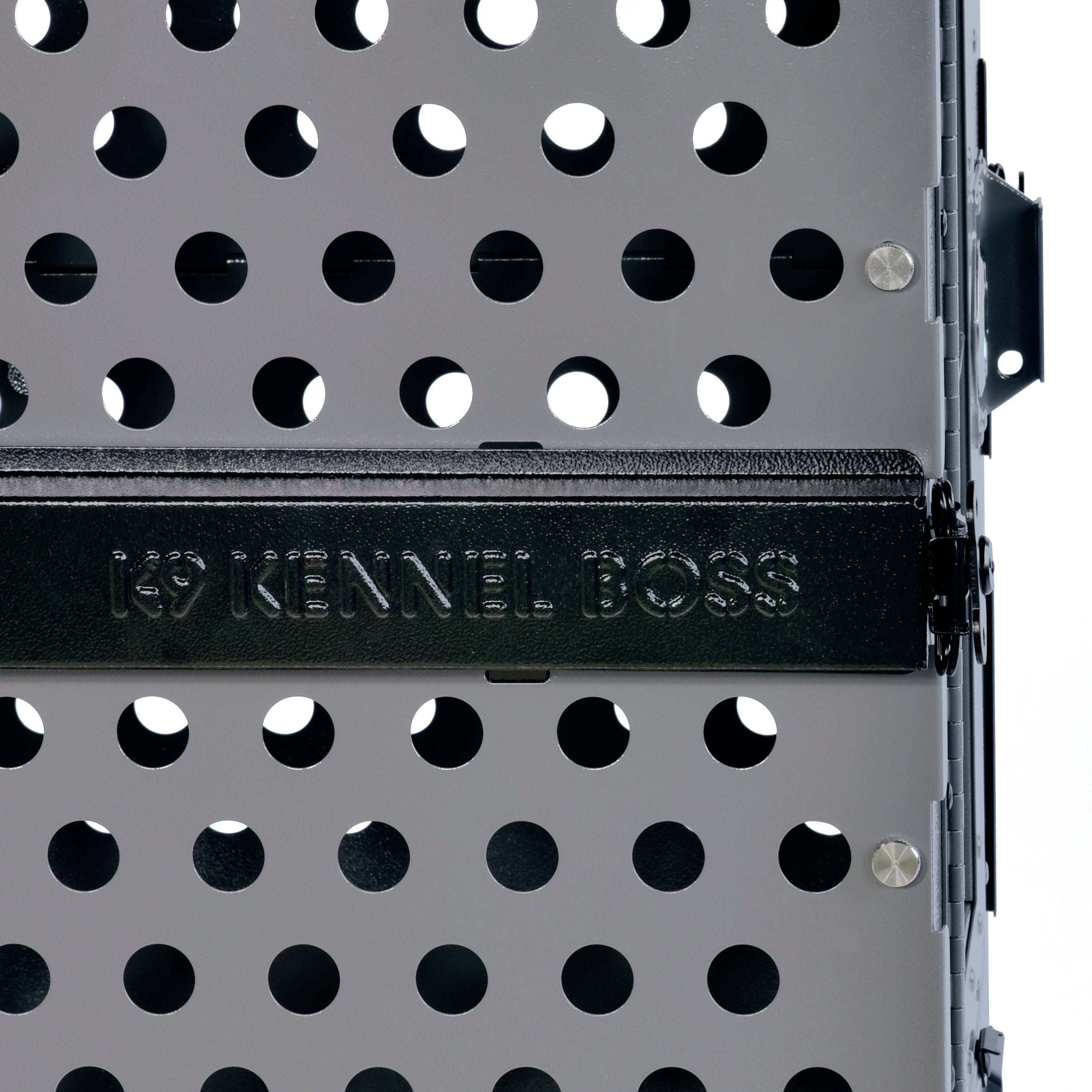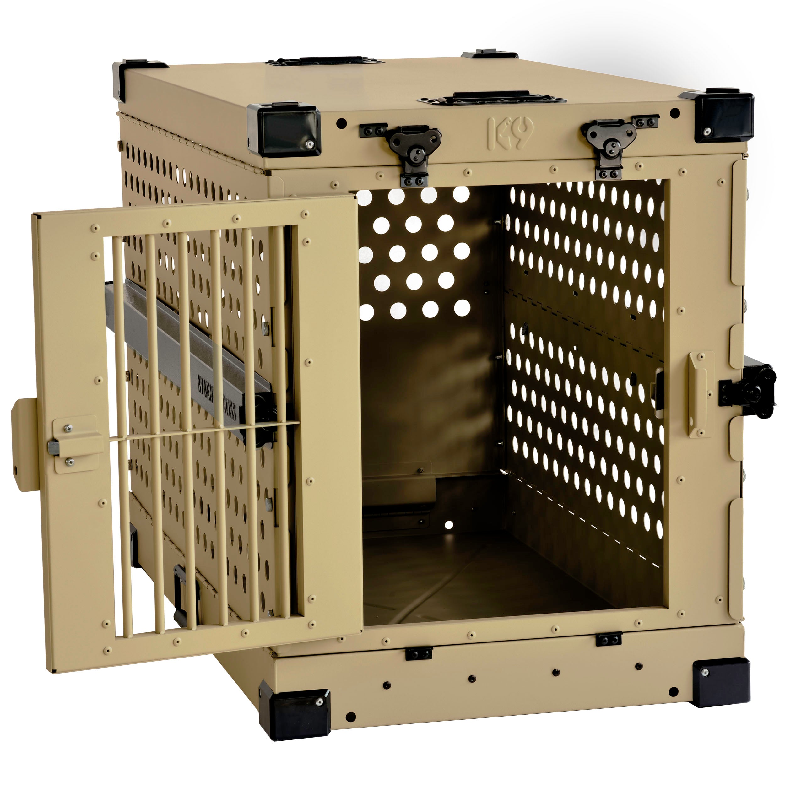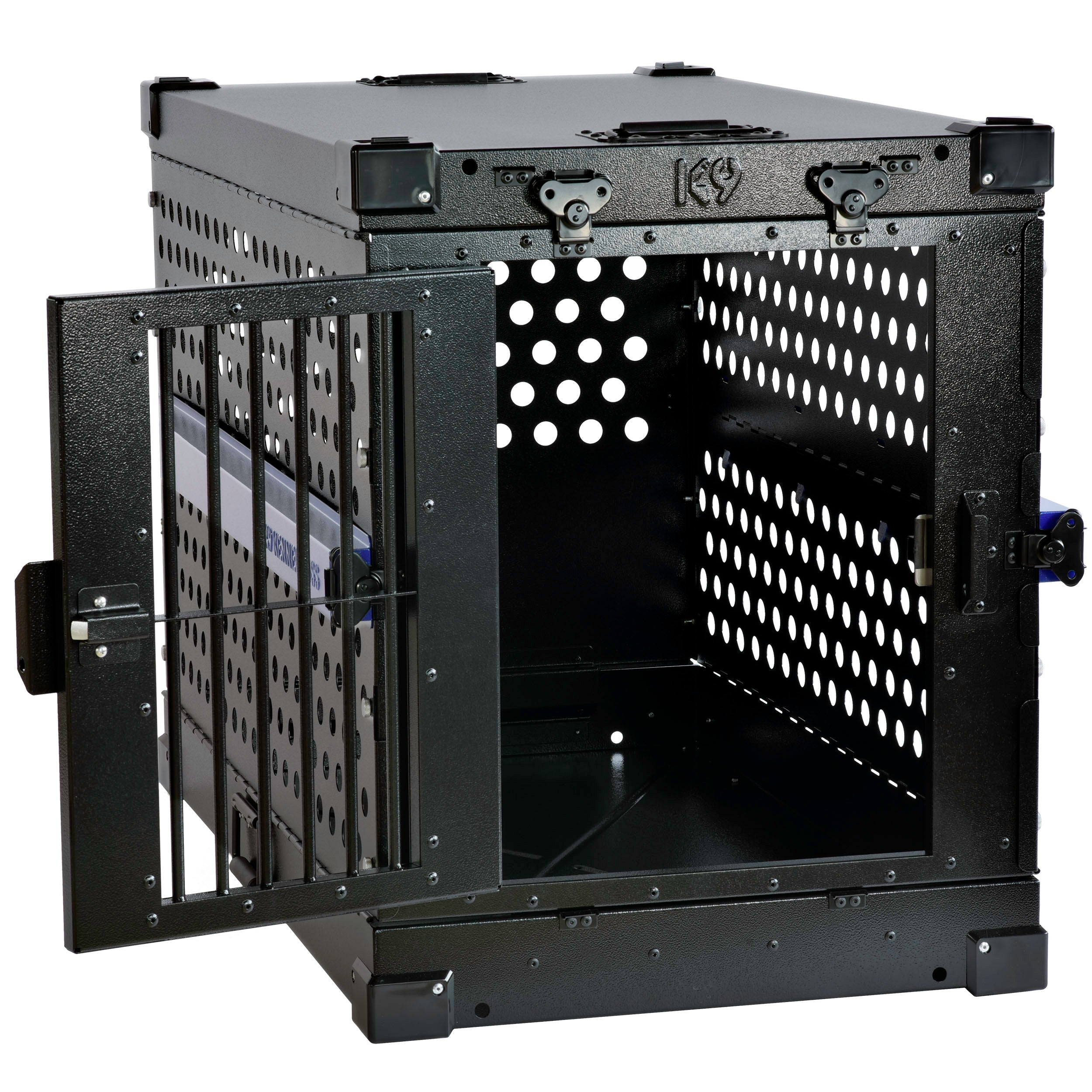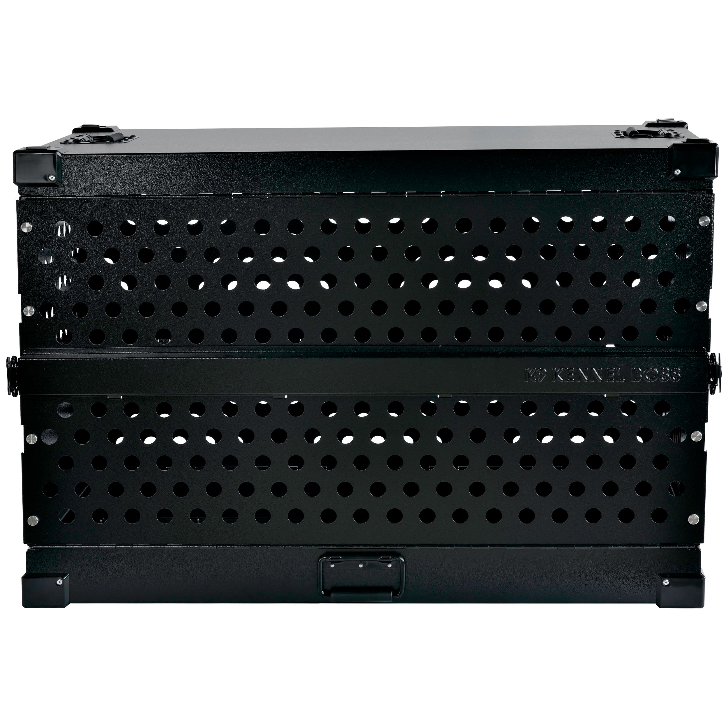 The K9 Kennel Boss collapsible dog crate is engineered to keep your dog safe and contained. With its lightweight aluminum construction, commercial-grade hardware, and high-quality powder-coated finish, this sturdy design helps prevent dog escapes and is easy to clean. The collapsible design easily transitions from assembled to suitcase configuration in under a minute with no additional tools required. Built-in handles allow for easy transporting or storing of the crate when not in use.