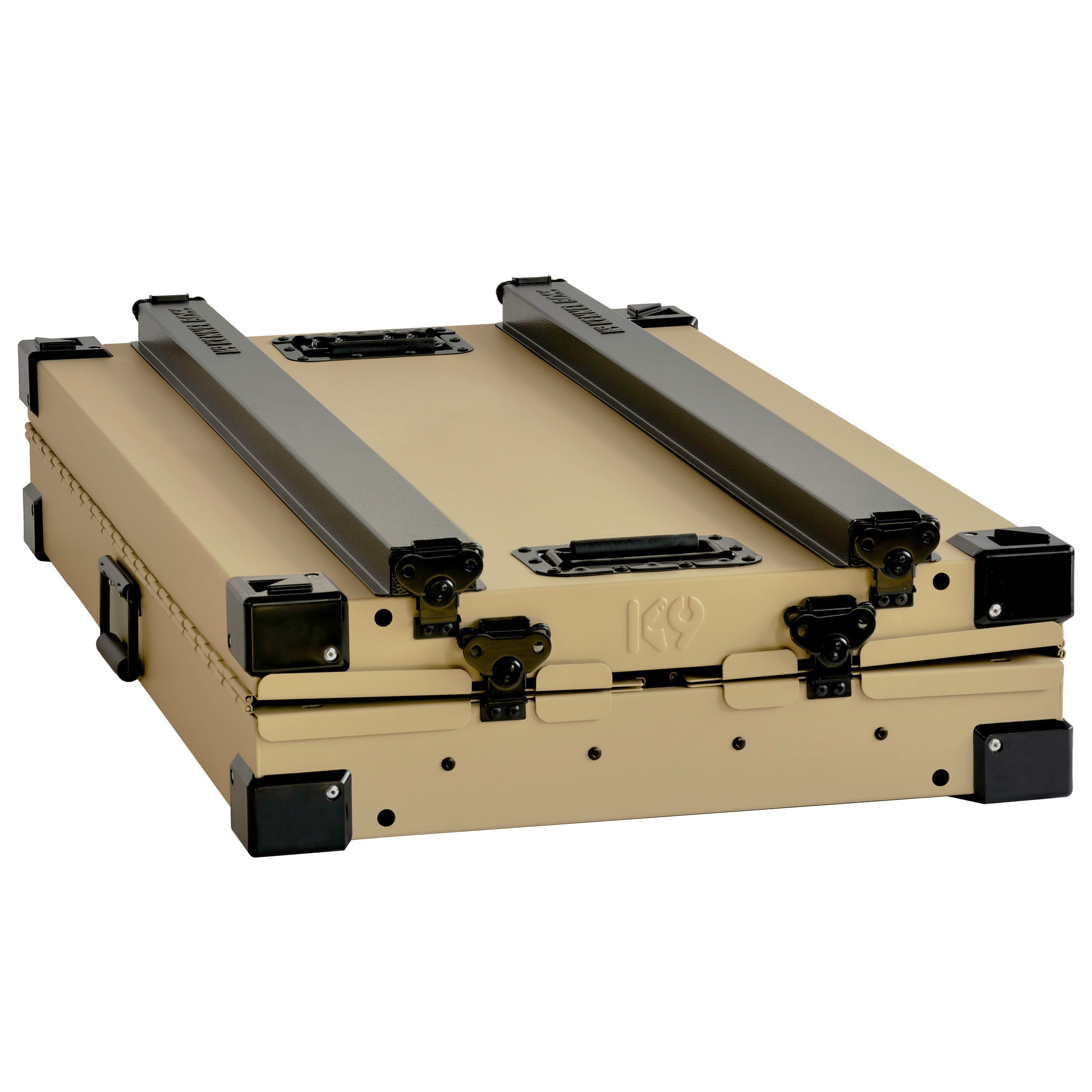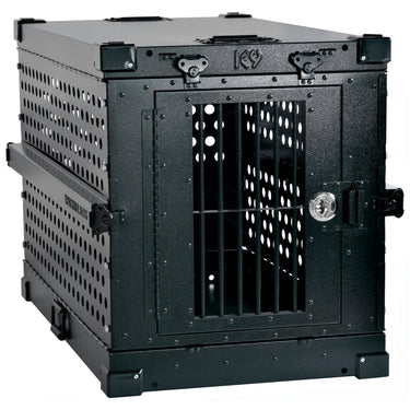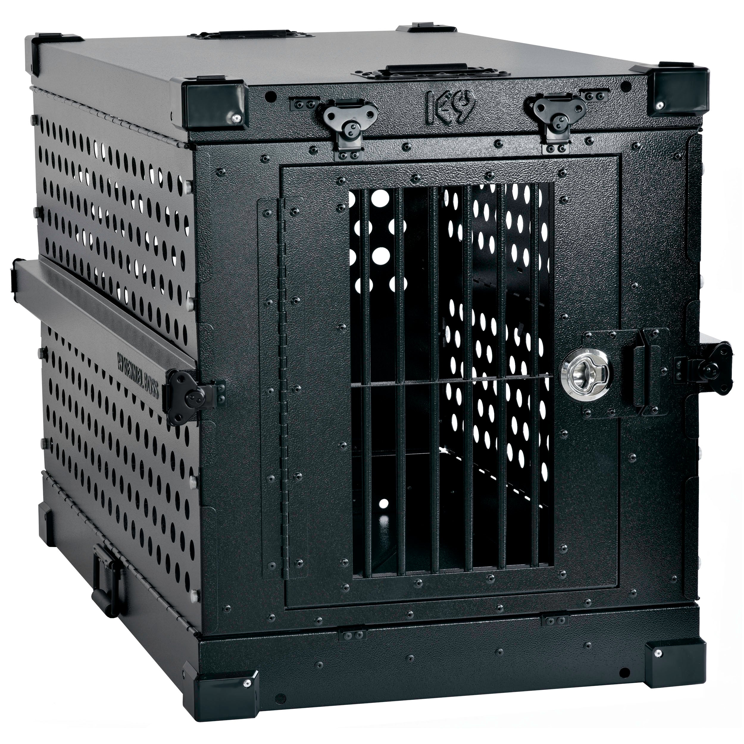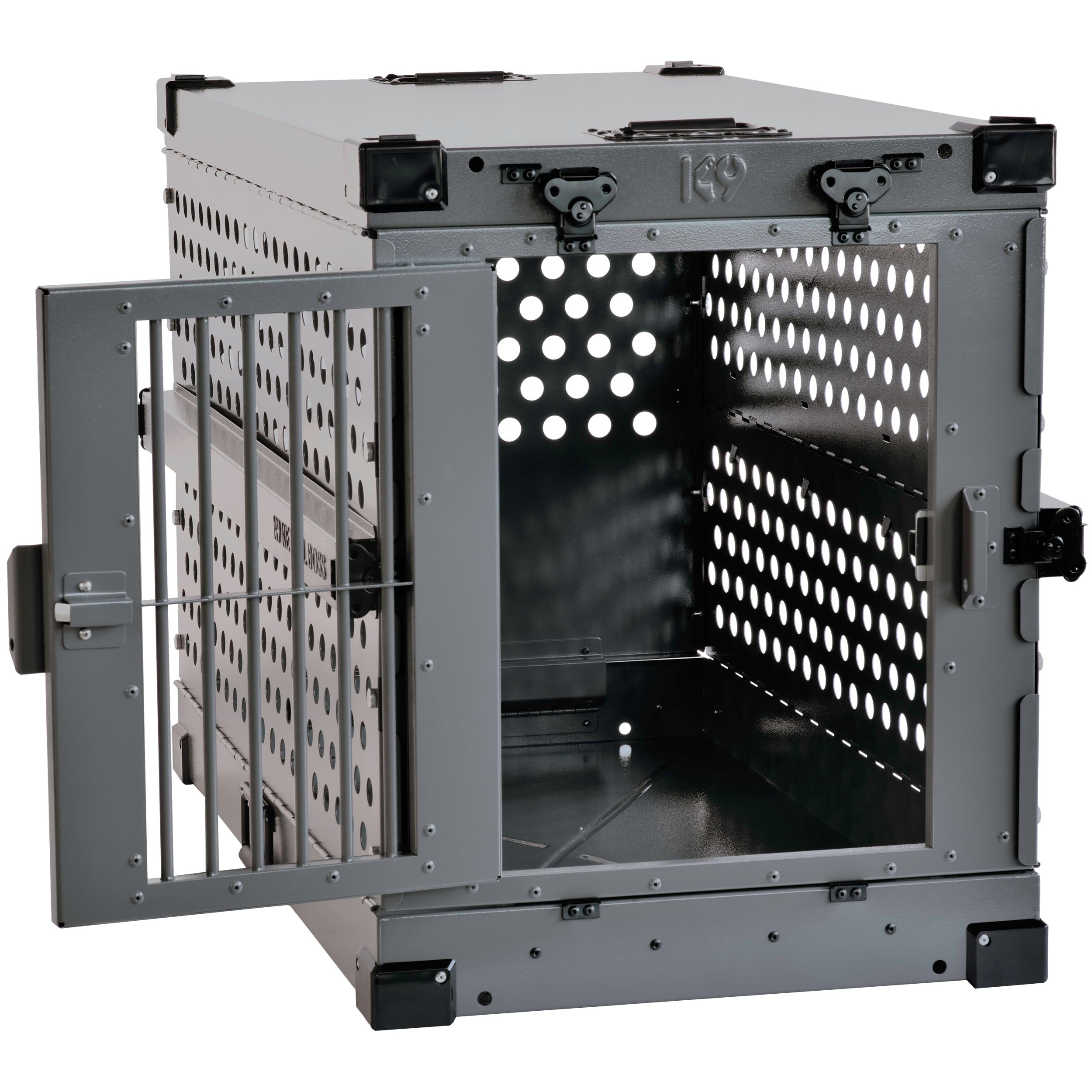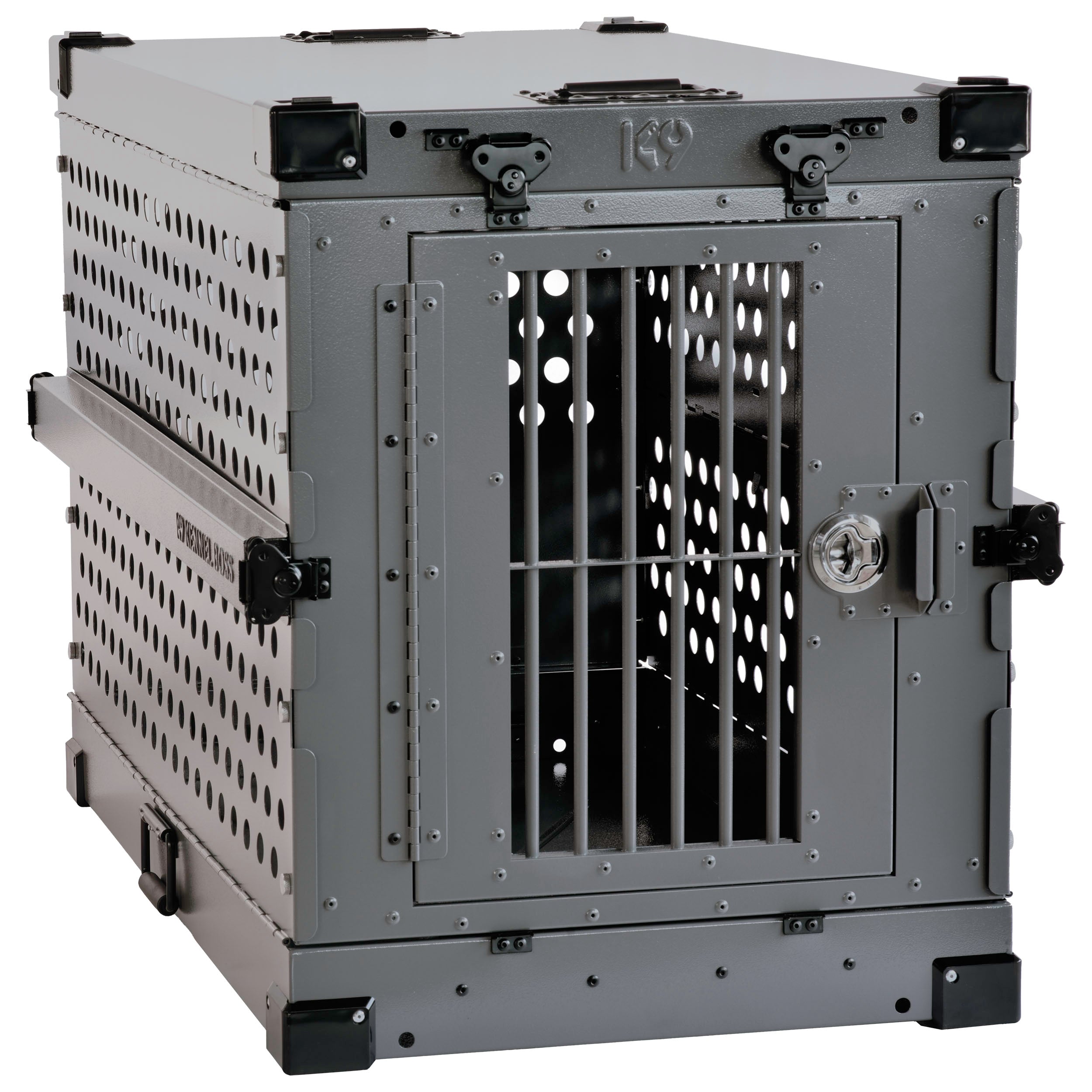 The K9 Kennel Boss collapsible dog crate is engineered to keep your dog safe and contained. With its lightweight aluminum construction, commercial-grade hardware, and high-quality powder-coated finish, this sturdy design helps prevent dog escapes and is easy to clean. The collapsible design easily transitions from assembled to suitcase configuration in under a minute with no additional tools required. Built-in handles allow for easy transporting or storing of the crate when not in use.