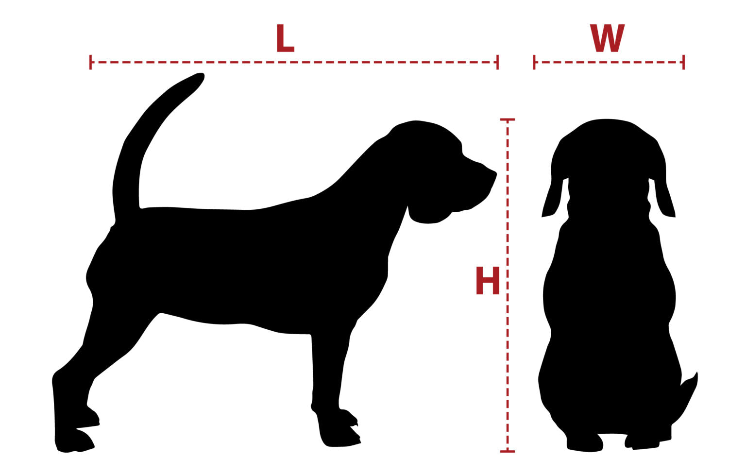 Ideal for dogs up to 27" tall (when standing) and 32" in length (nose to base of tail)
